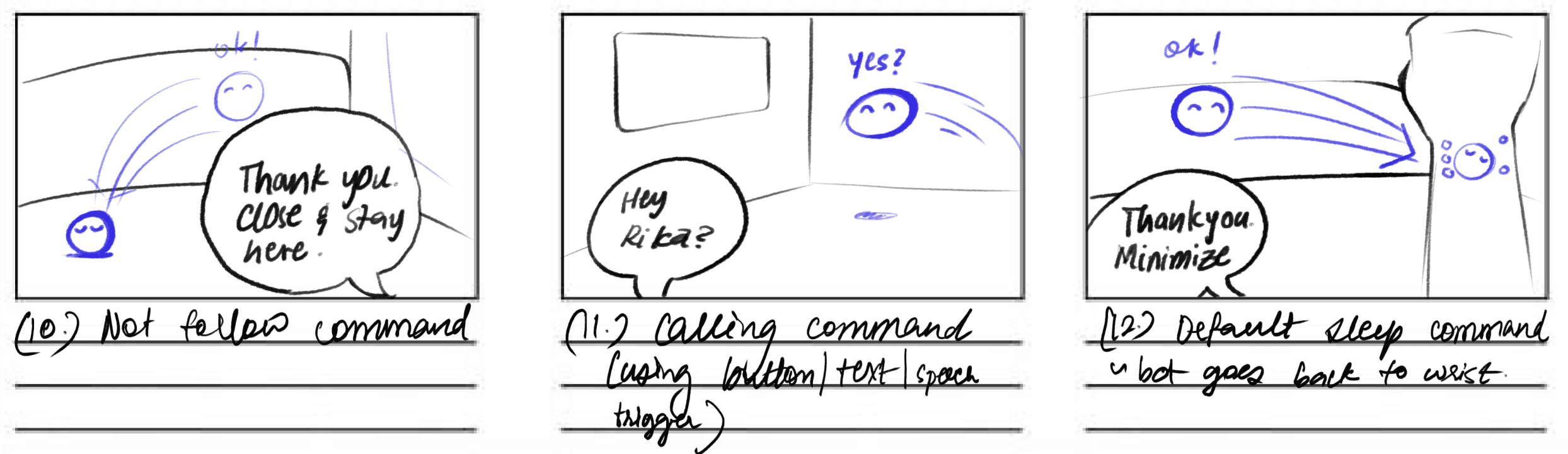 To provide a more intuitive functionality, the interactions were “personified” - each element in the system was given an identity. This process included the application of empathic computing for an overall “personification of machines”.