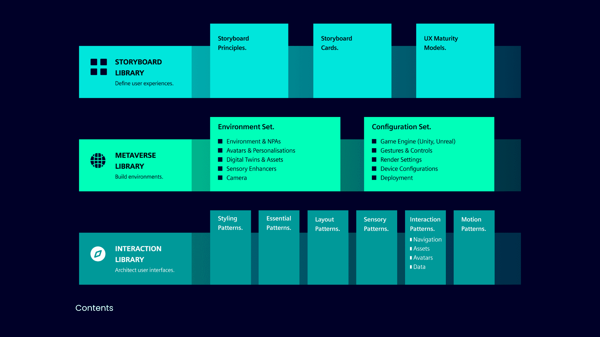 After pioneering experiences for the Industrial Metaverse, it was important to define the User Experience Vision Architecture and develop a consistent design system. The graphical representation of the UX Vision Architecture of Siemens is depicted here.