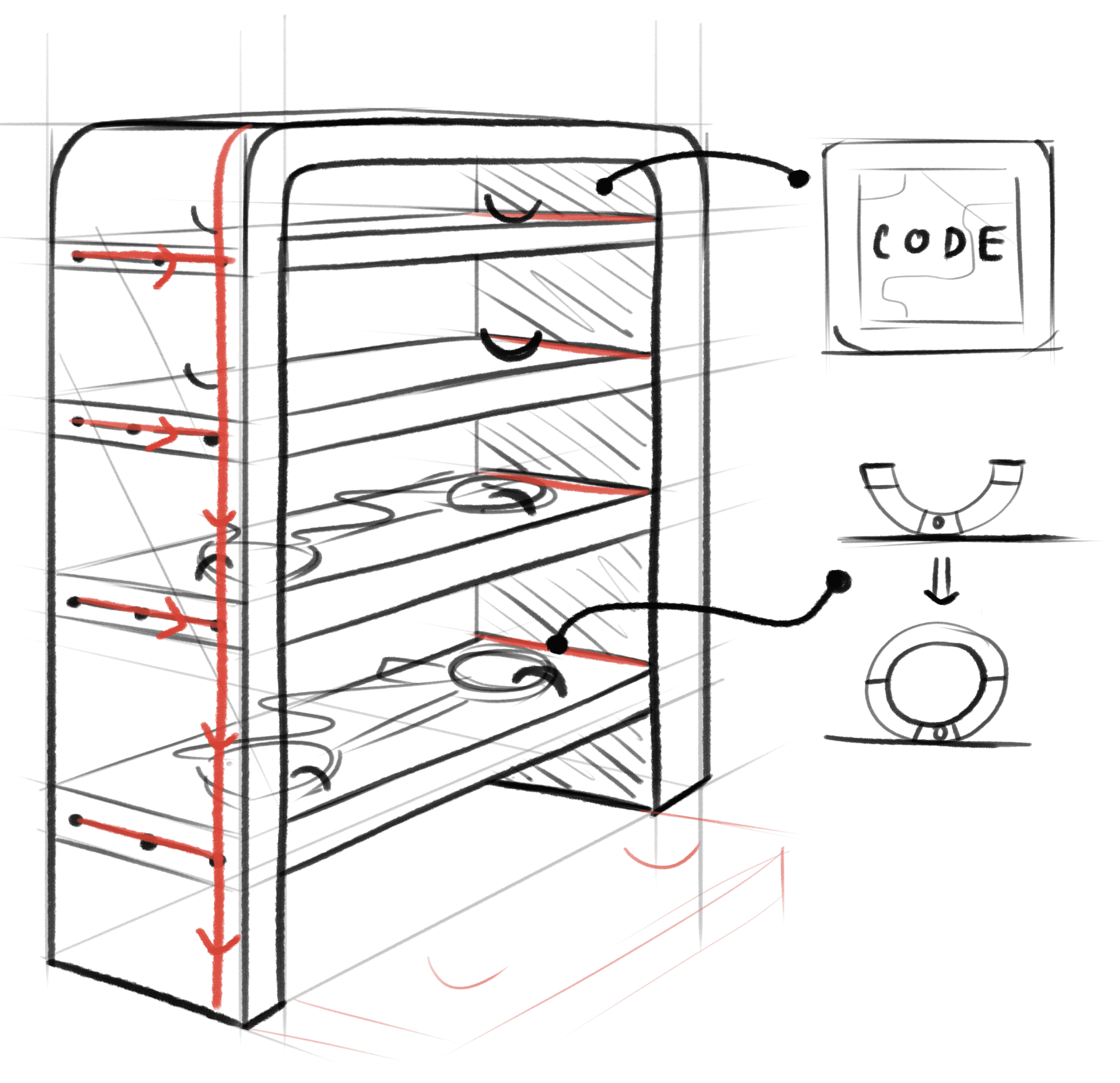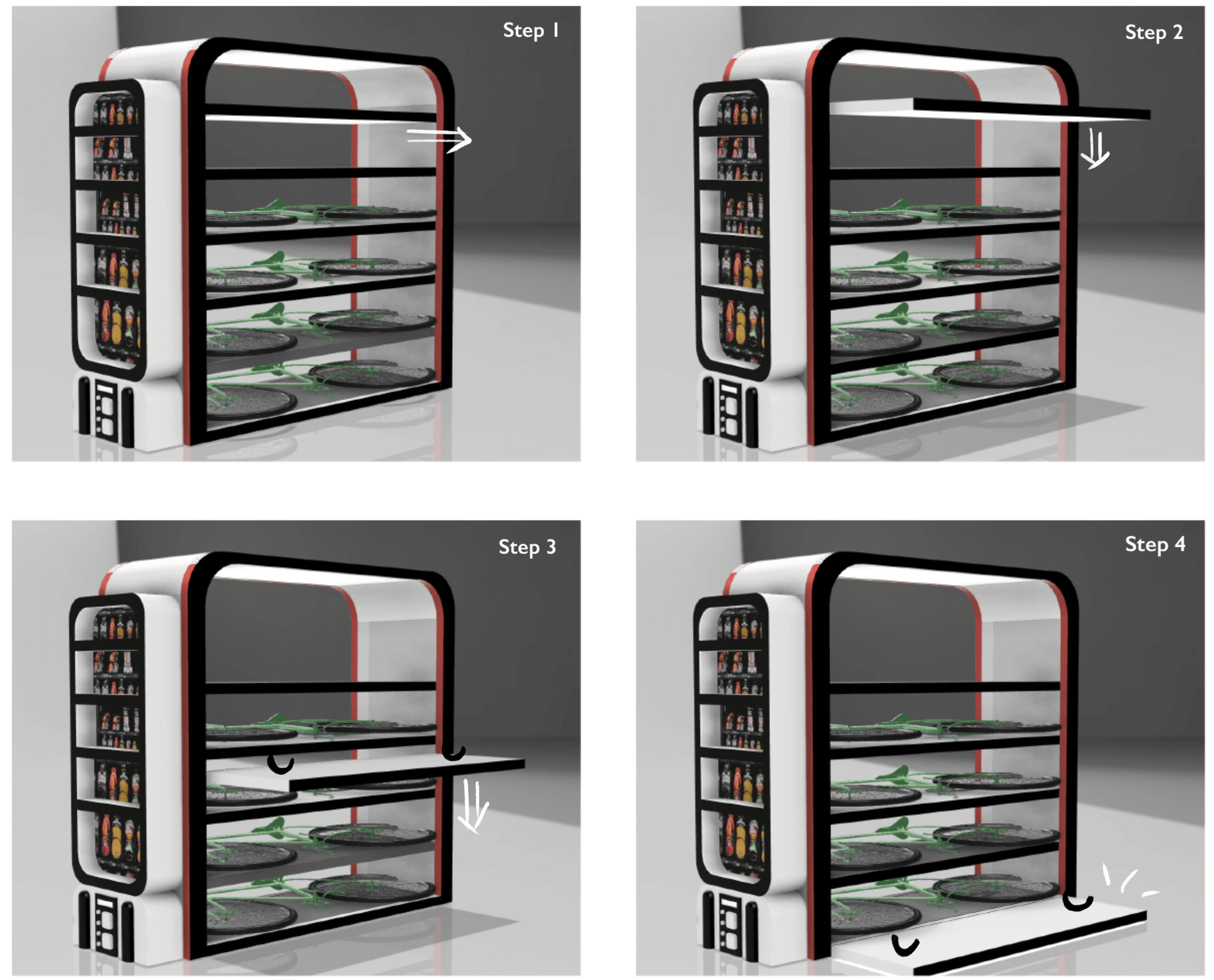 Step 4: Bicycles can be placed on the slab and the locks snap shut. The slab moves back to its place.