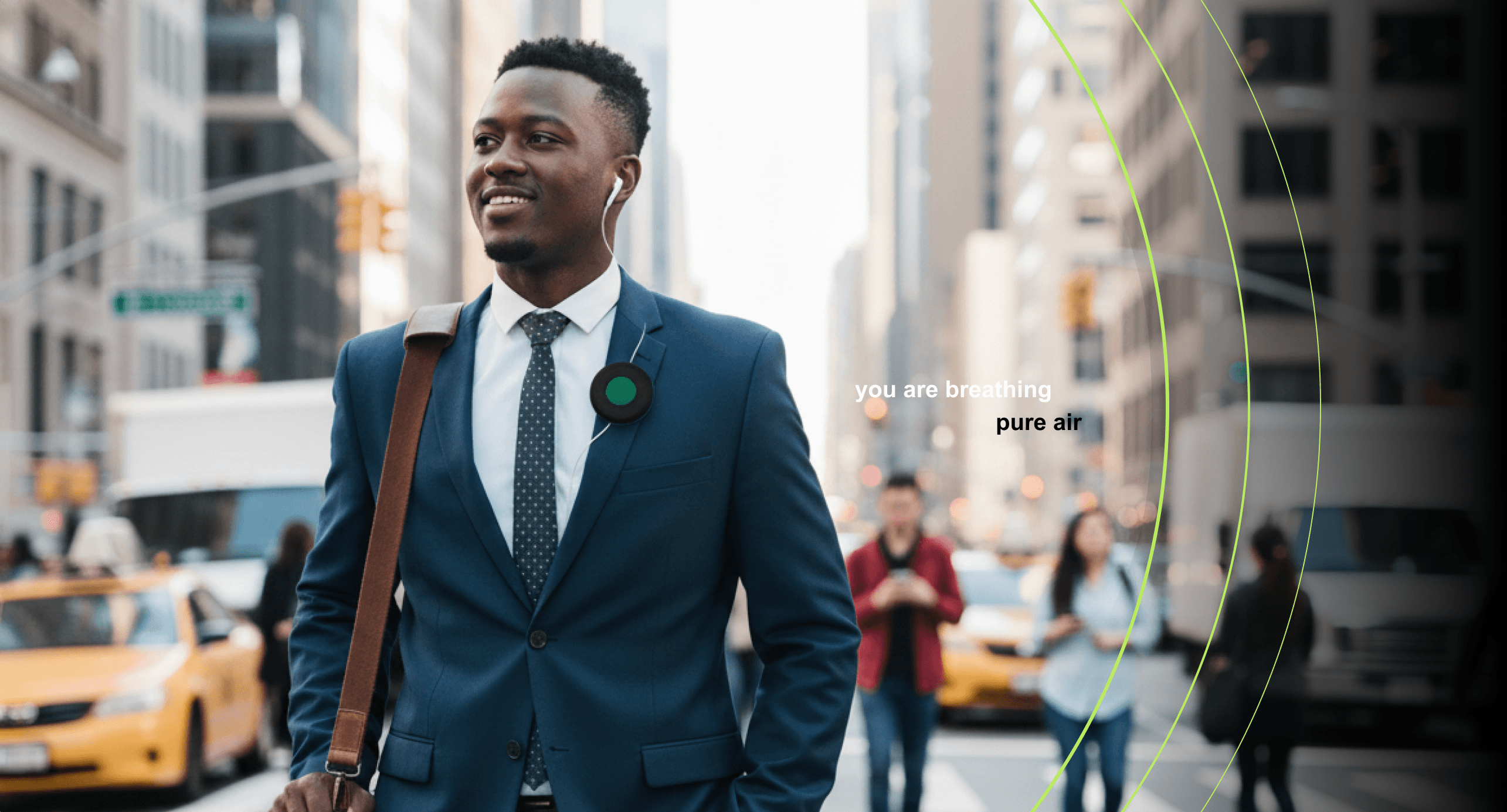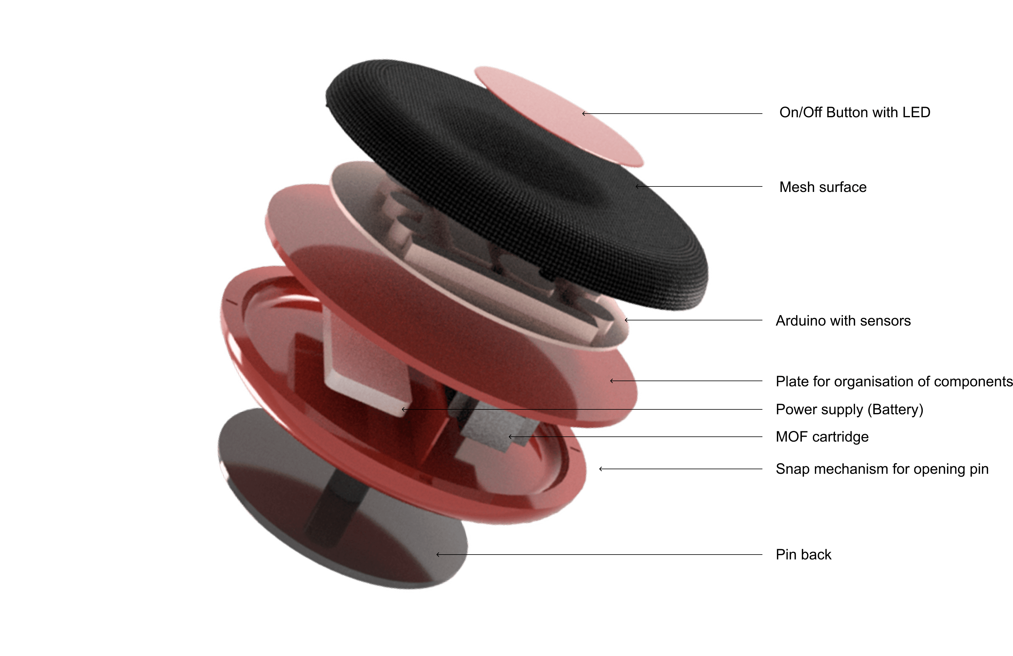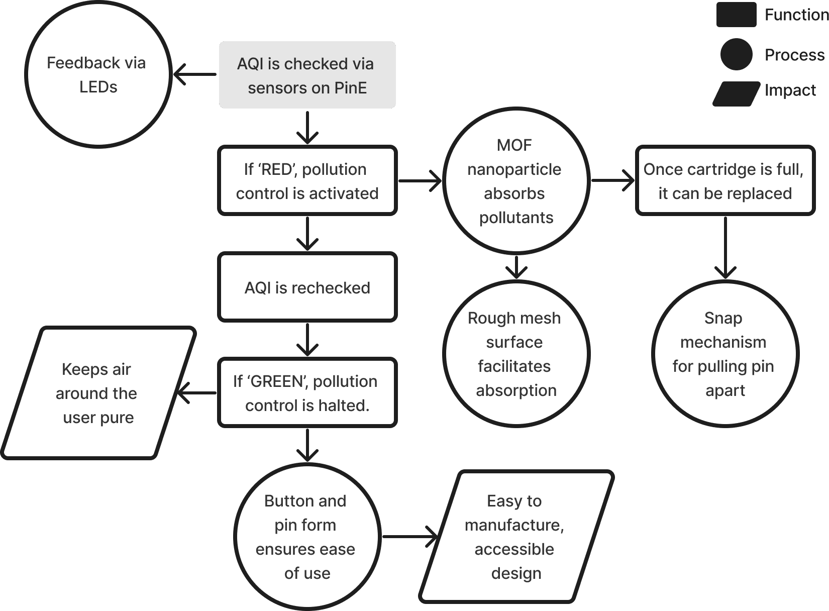 PinE is a wearable pin that monitors the air quality and provides feedback via differently colored LEDs. The nanotechnology integrated purifies the air around the user by absorbing pollutants.