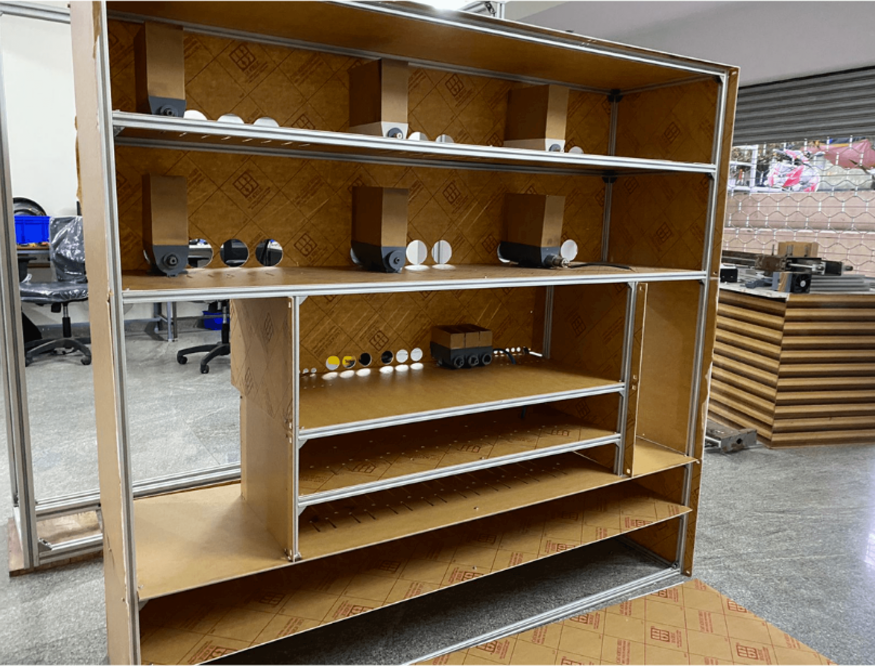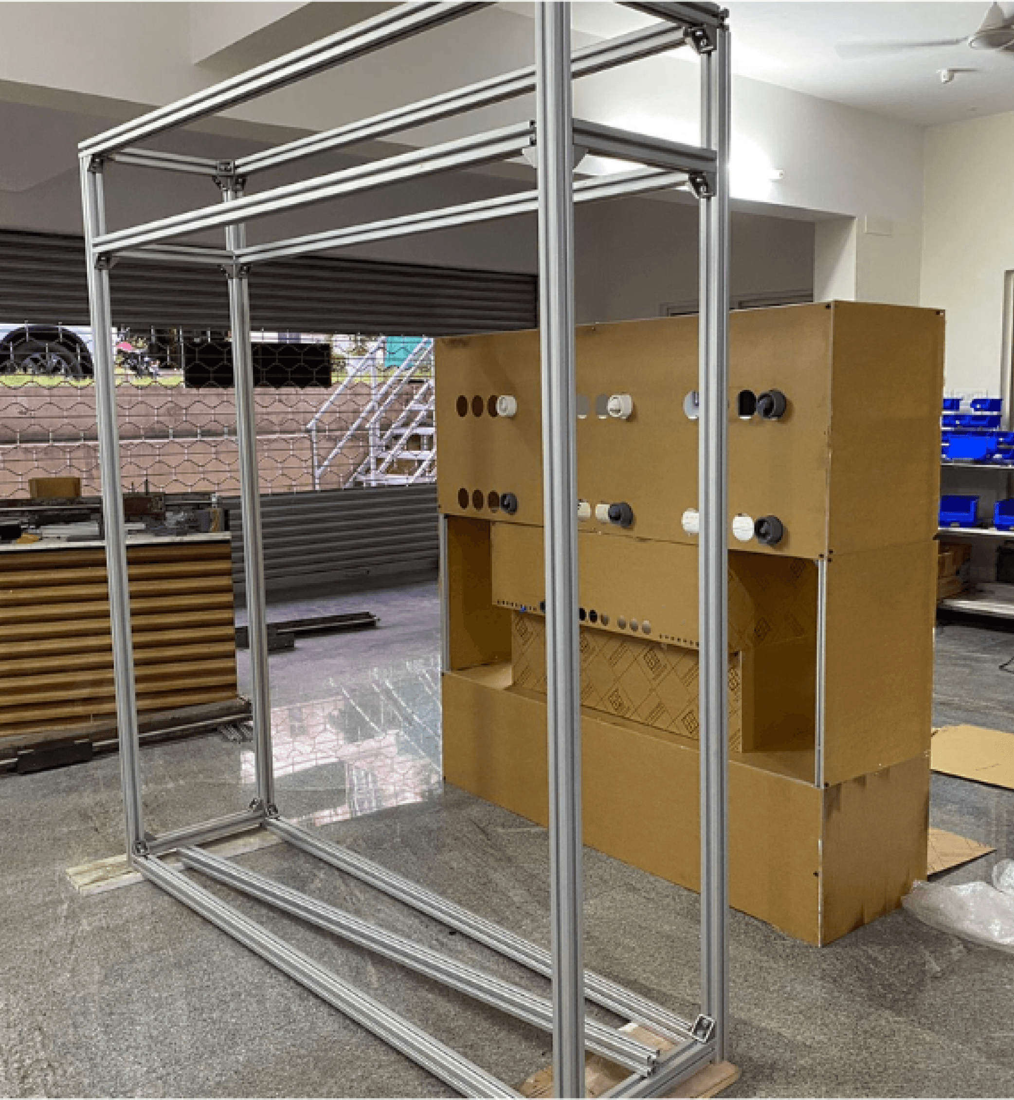 A 1:1 scale prototype was built for testing the robotic kitchen. A thorough set of requirements was formulated and a detailed map of procedure was designed. The following images show the key steps of the prototype.