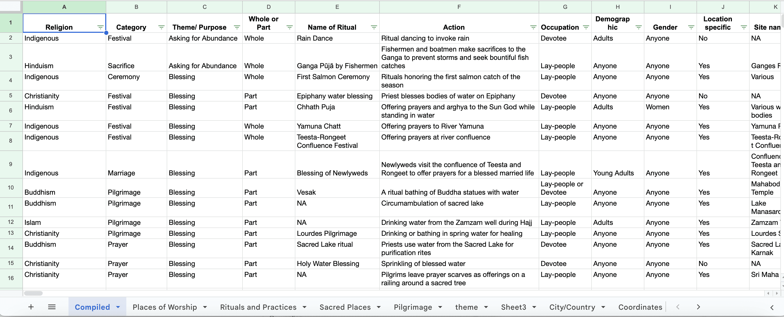 We used the GPT 4.0 model on Perplexity to analyze the texts and manually built an exhaustive dataset featuring the different uses and themes of water across a set category of religions.